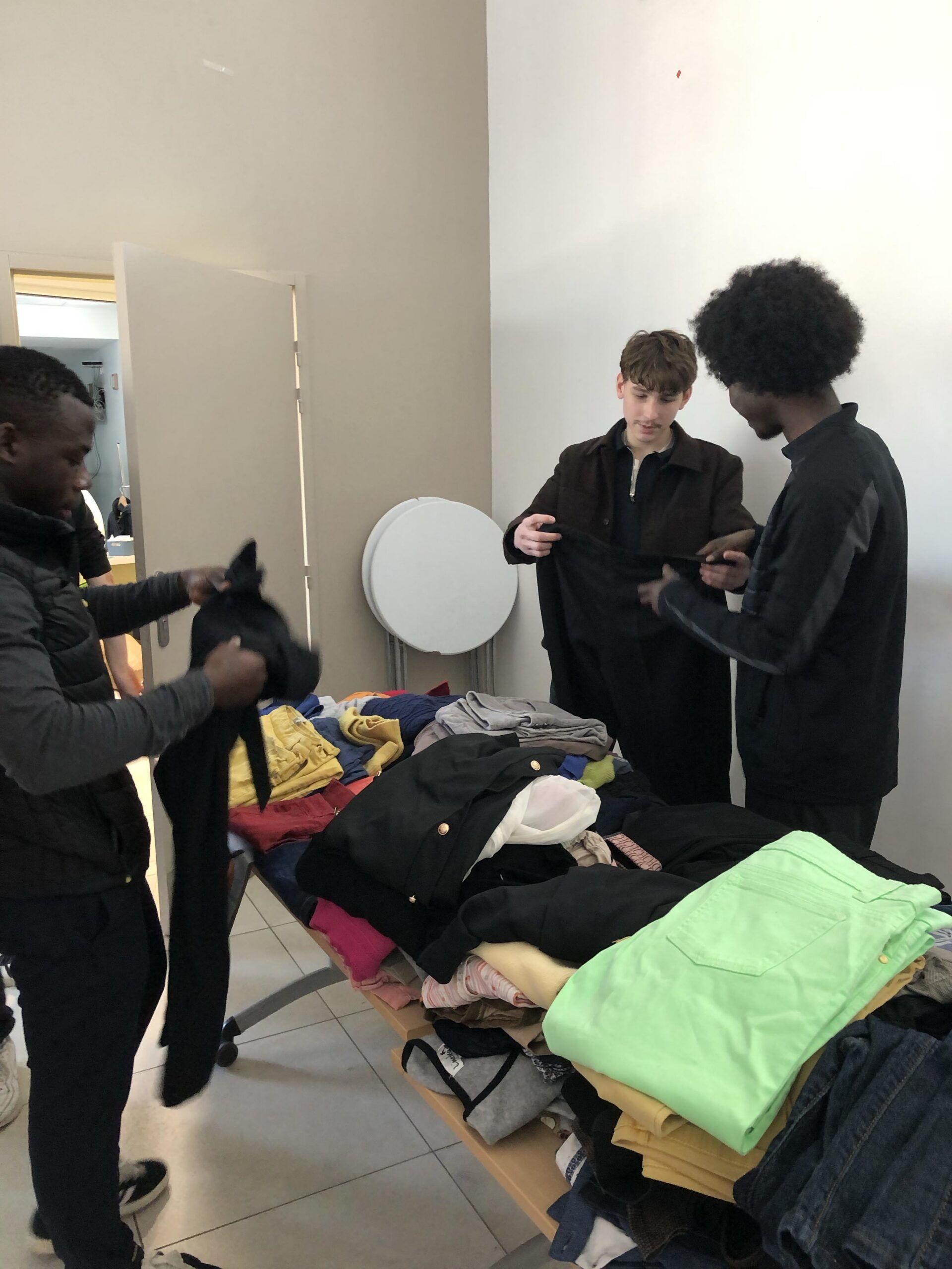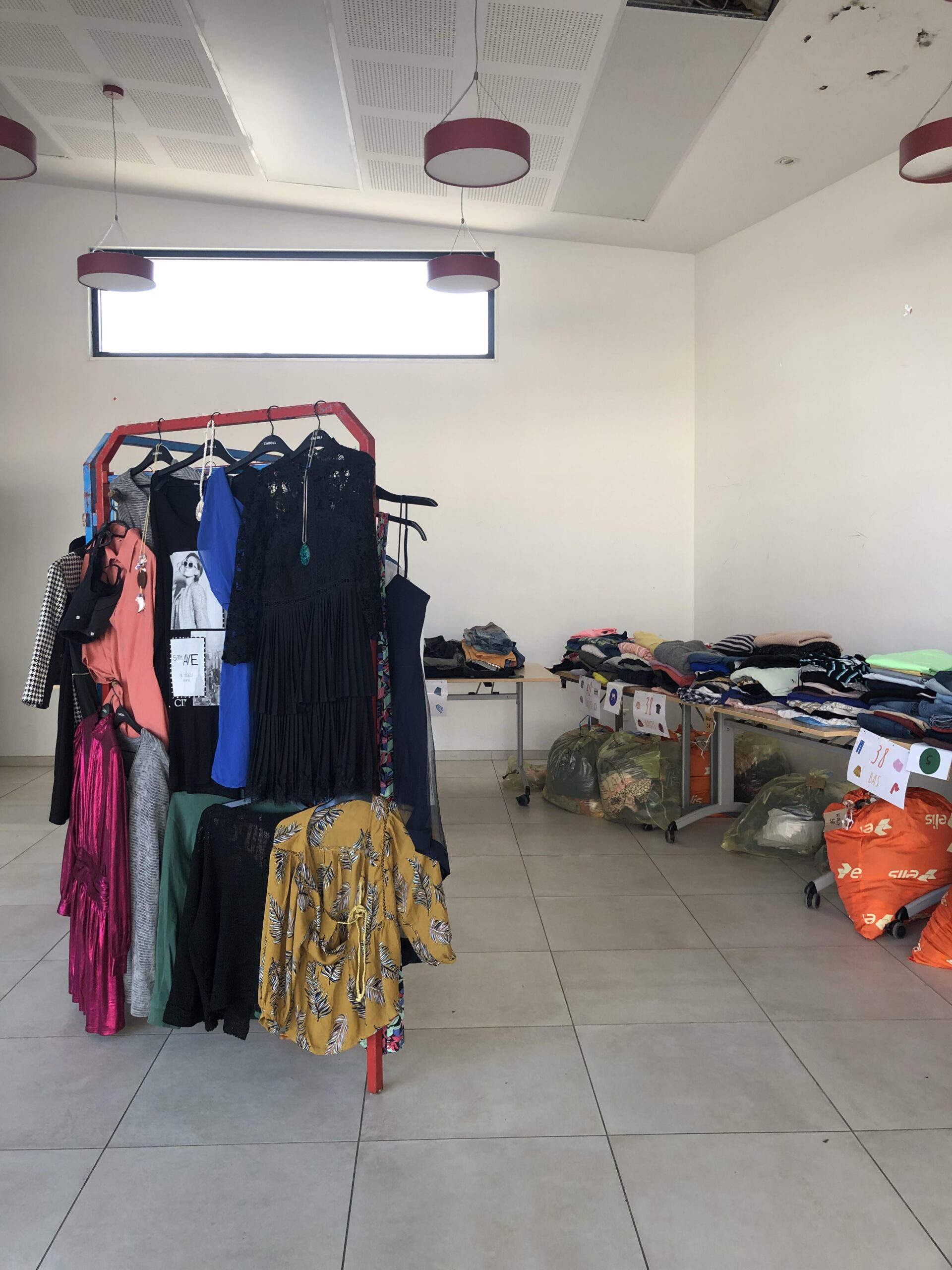 Toute la matinée, l’espace a pris forme et les vêtements et autres dons ont été trié par tailles.